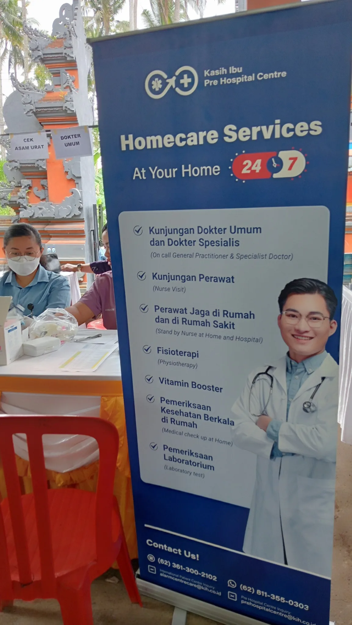 A wide range of health services were offered for both women, men, and children. These included eye care consultations, IVA / Pap Smear screening for early detection of cervical cancer, physiotherapy treatments, blood sugar testing, dental hygiene education, and light dental examinations for children. There was also a breast screening program for women, THT (ENT) check-up, GP consultations, and the distribution of medicines to support ongoing care needs. Each service was handled by qualified and caring professionals, making sure every patient felt comfortable, respected, and properly informed.